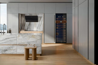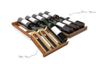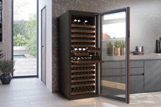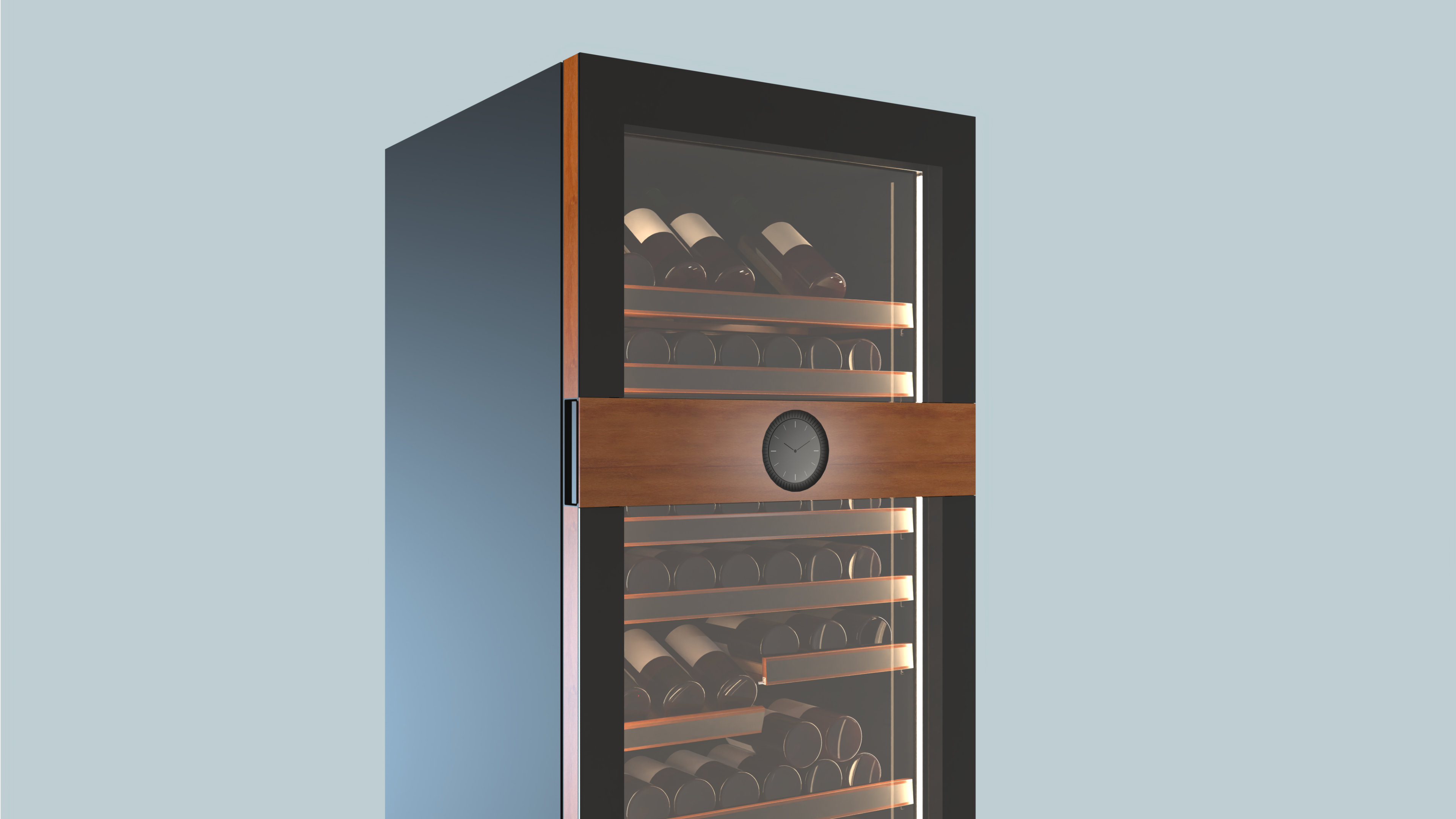 Der Weinklimaschrank für Hisense denkt Vieles neu und besticht durch seine Einzonen-Kühltechnologie, die auf Knopfdruck in eine Mehrzonenkühlung umgestellt werden. Perfekt für Feiern oder Gäste mit verschiedenen Vorlieben. Das Kernstück sind die verschiedenen Vollauszüge, welche sich auch zu Präsentationsauszügen mit Servierfunktion umbauen lassen. Weinflaschen können schräg gestellt und für besondere Anlässe präsentiert werden. Die Kork-Flaschenhalter halten den Wein sicher und erschütterungsarm. Eine SmartPhone-App ermöglicht das Katalogisieren und schnelle Auffinden von bestimmten Flaschen im Kühler und kann sogar bestimmte Sorten nachordern. Die Display-Binde fügt sich, durch das kreisrunde Display in Holz eingelassen, perfekt in eine hochwertiges Ambiente ein, auch in Ihr Wohnzimmer.